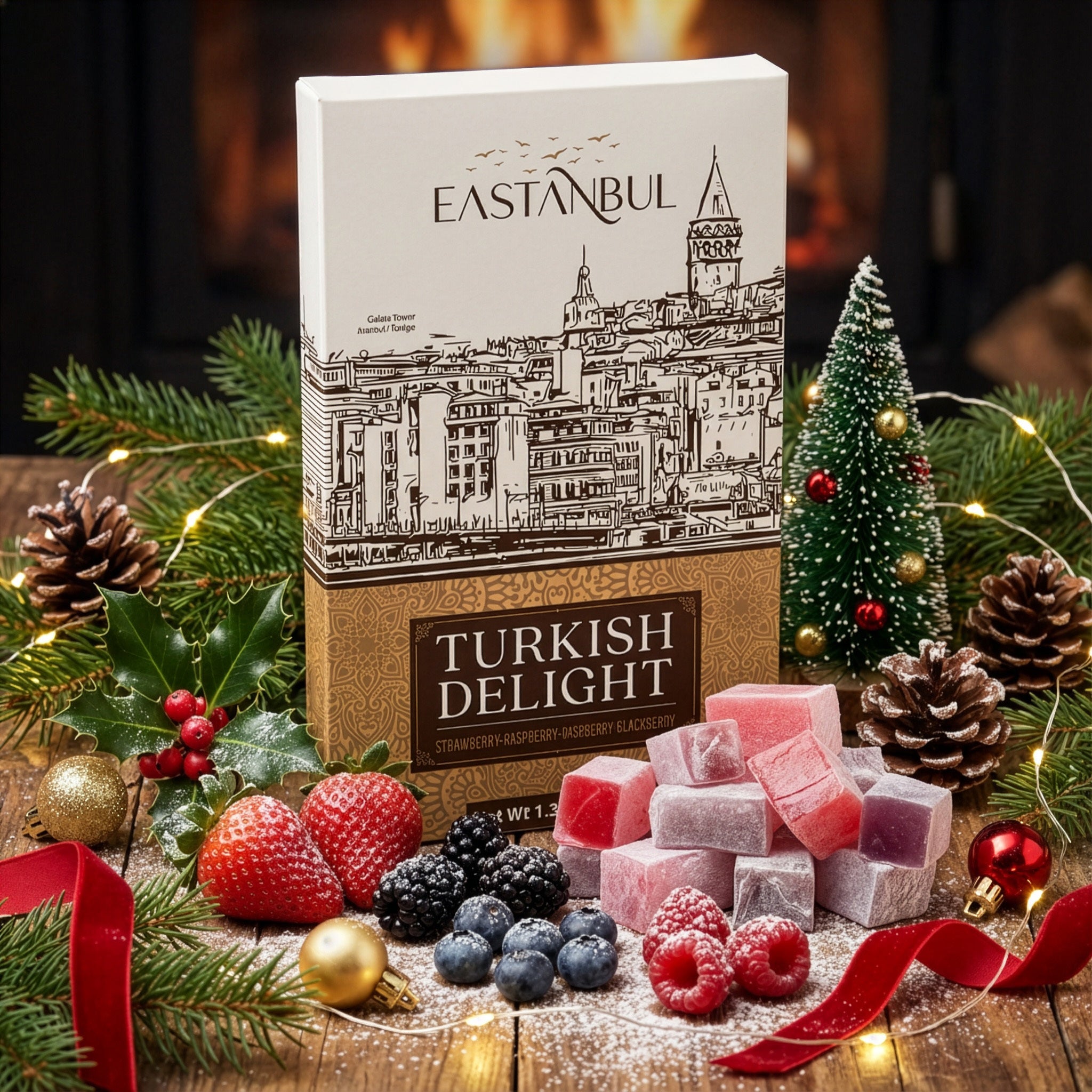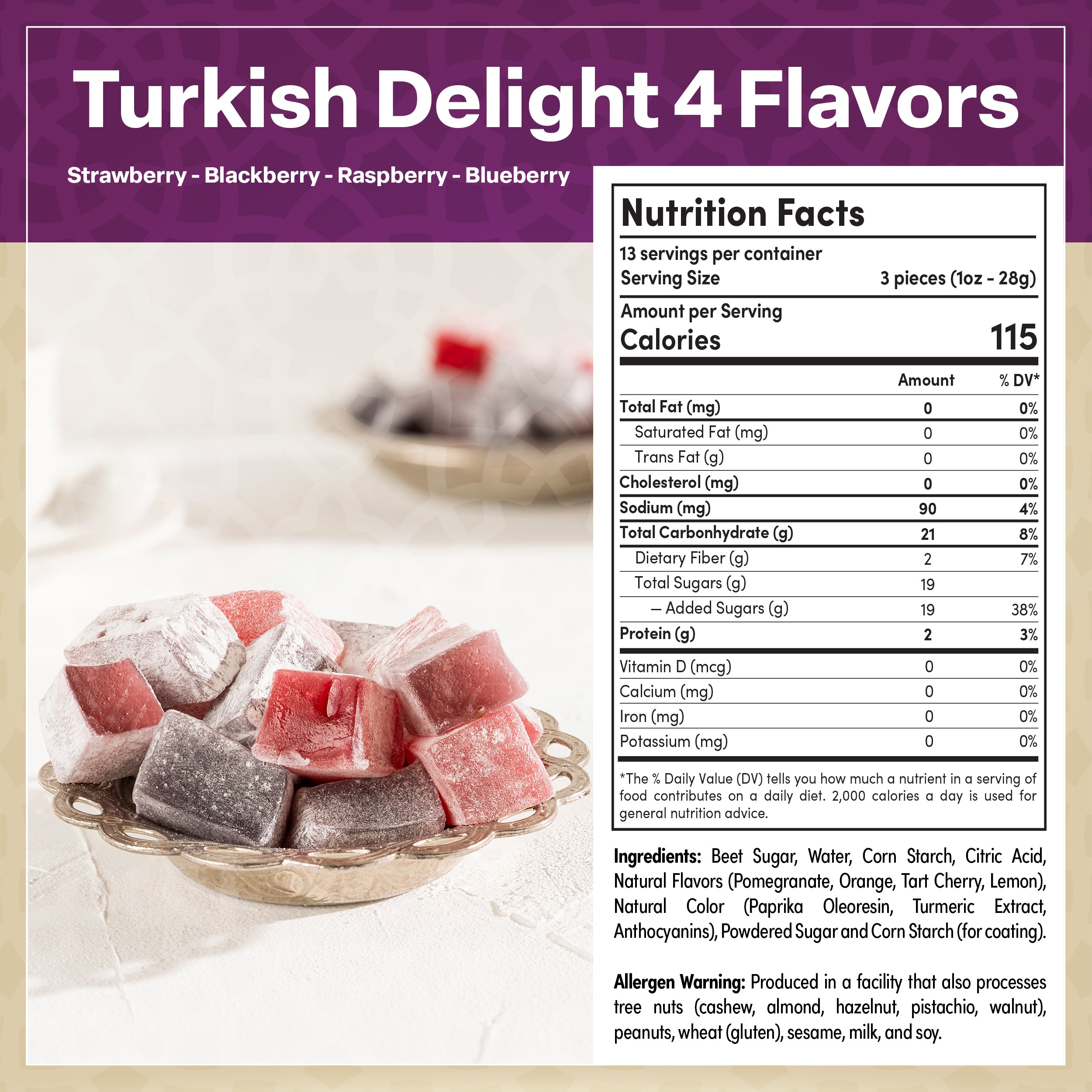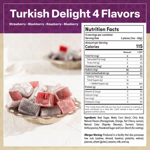 • Fan Favorites Turkish Delights Assorted with 4 Forest Berries:  PStrawberries, Blackberries, Raspberries & Blueberries