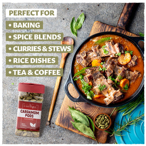 Premium Whole Cardamom Pods : Enjoy whole green cardamom pods — vibrant, aromatic, and freshly packed to preserve their natural essential oils. Perfect for desserts, curries, cinnamon rolls, or to flavor Turkish coffee and spiced tea. Our non-GMO, vegan, and gluten-free elaichi comes in a resealable, freshness-preserving pouch to maintain color, aroma, and flavor. Sourced from India and Guatemala, known for producing the world’s finest green cardamom pods whole