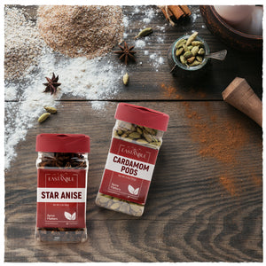 Flavor Synergy: The sweet, aromatic notes of star anise complement the spicy, citrusy undertones of green cardamom, enhancing the depth of flavor in both sweet and savory dishes.