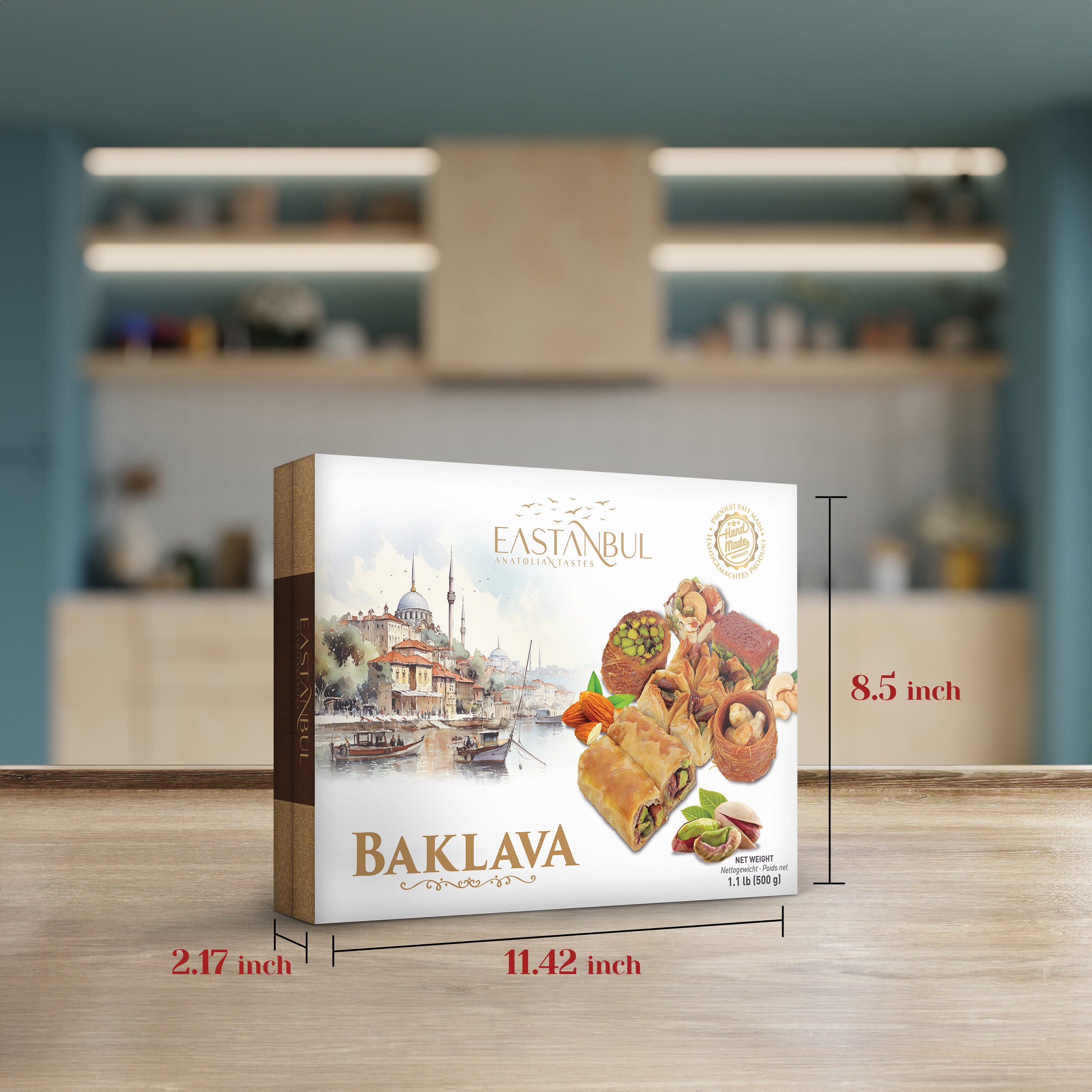 | Ingredients | Wheat Flour, Starch, Butter, Sugar, Water, Salt, Pistachio, Cashew |