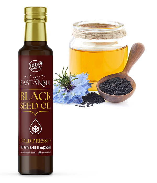 Eastanbul Turkish Spices Black Seed Oil Unlock the extraordinary benefits of our Premium Black Seed Oil, a revered elixir known for its holistic approach to health and wellness. Cold-pressed from the seeds of the Nigella...