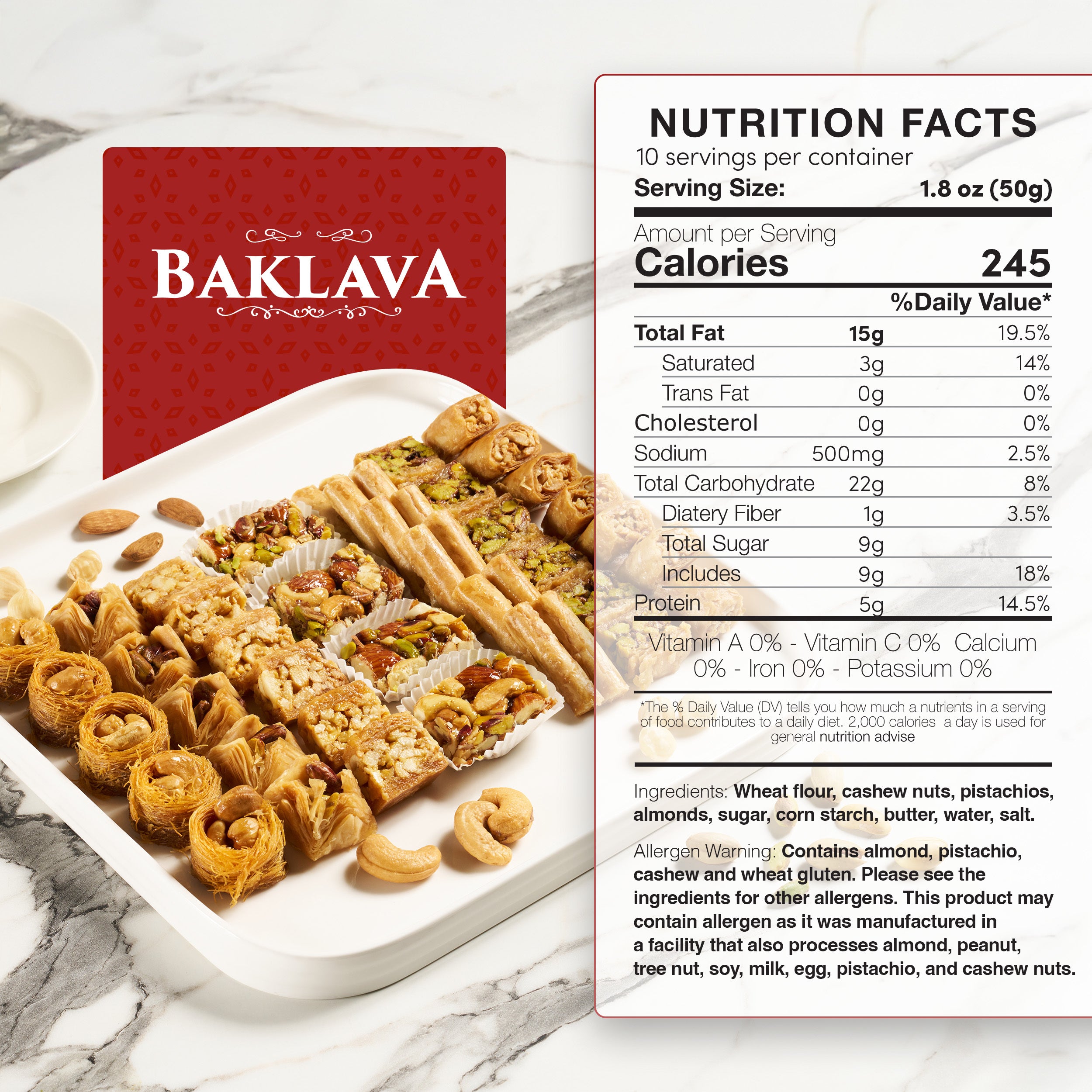 | Ingredients | Wheat Flour, Starch, Butter, Sugar, Water, Salt, Pistachio, Cashew |