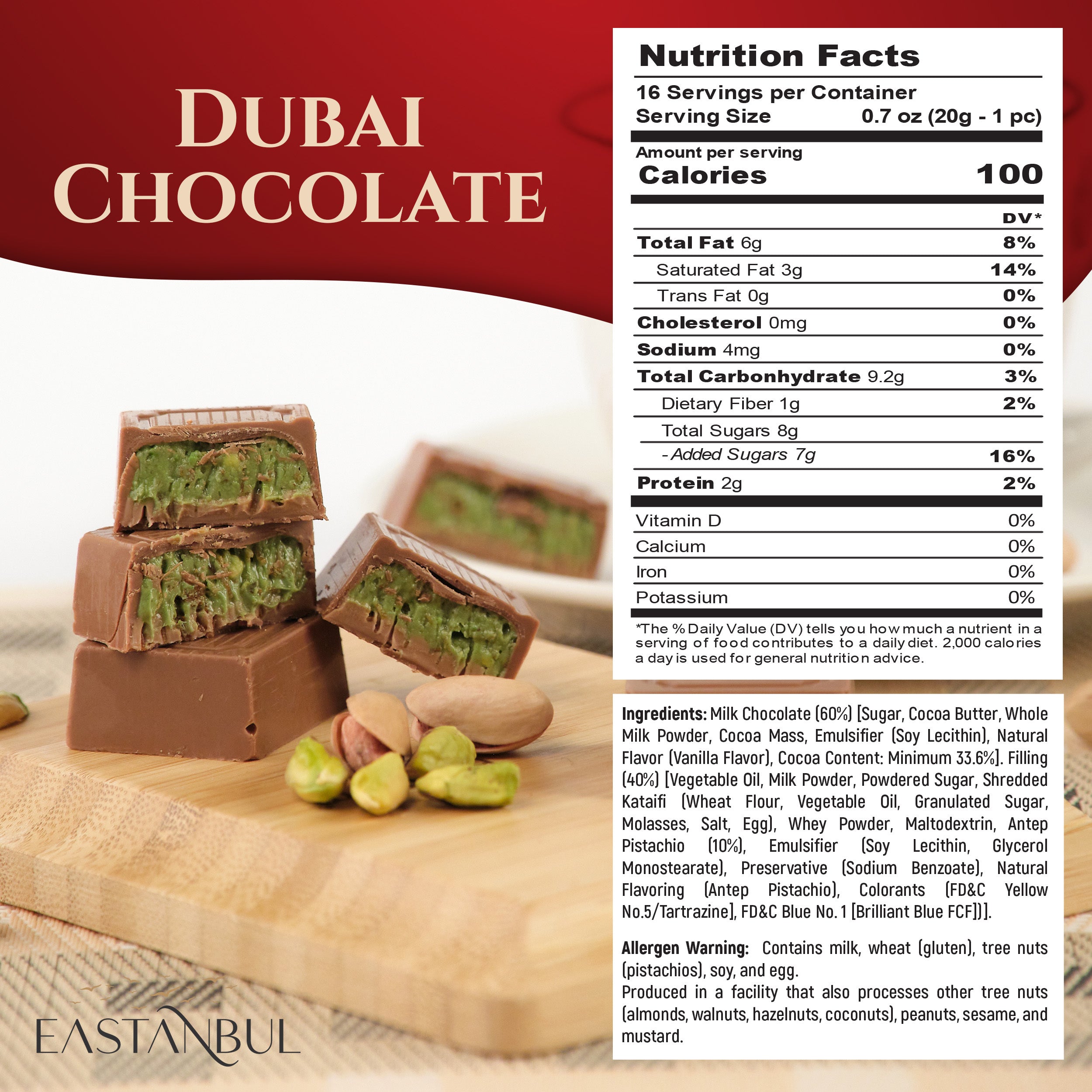 Dubai Chocolate Bar Pistachio, 11.3oz, Premium Pistachio Dubai Chocolate Bar, 16 Pieces
